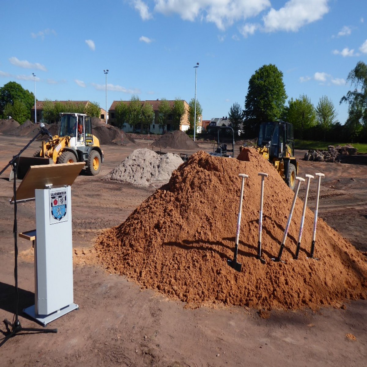 Mit einem symbolischen Spatenstich starteten Mitte Mai die Bauarbeiten an der Sportanlage Lulustein in Saarbrücken.