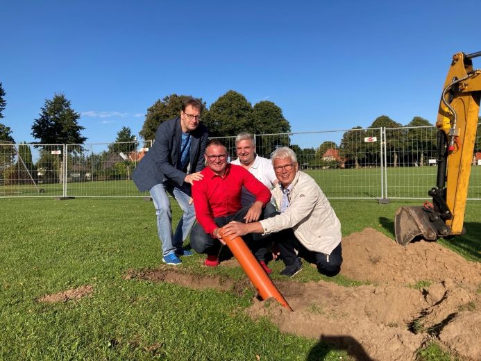 Mit dem offiziellen Spatenstich fiel in Sukow-Levitzow der Startschuss für den Ersatzneubau der Sport- und Begegnungsstätte DAT TÖRP. Der moderne Neubau in Massivbauweise wird an Stelle des bisherigen Funktionsgebäudes aus Holz errichtet. Unter anderem dank des barrierefreien Zugangs soll er den Bedürfnissen der rund 500 Einwohnerinnen und Einwohner künftig besser gerecht werden und Raum für Sport, Freizeit und gemeinschaftliche Aktivitäten bieten. Damit entsteht ein Ort, der das Miteinander in der Gemeinde stärkt und wetterunabhängige Veranstaltungen ermöglicht – ein Mehrwert für die örtlichen Vereine, die die Sportstätte seit Jahren als zentralen Treffpunkt für alle Generationen nutzen. Besonderer Wert liegt auf Energieeffizienz und Nachhaltigkeit: Eine verbesserte Gebäudehülle und der Einsatz einer Wärmepumpe tragen zur Senkung des Energieverbrauchs und zum Klimaschutz bei. Das Projekt wird mit 844.000 Euro aus dem Bundesprogramm „Sanierung kommunaler Einrichtungen in den Bereichen Sport, Jugend und Kultur“ bezuschusst.
