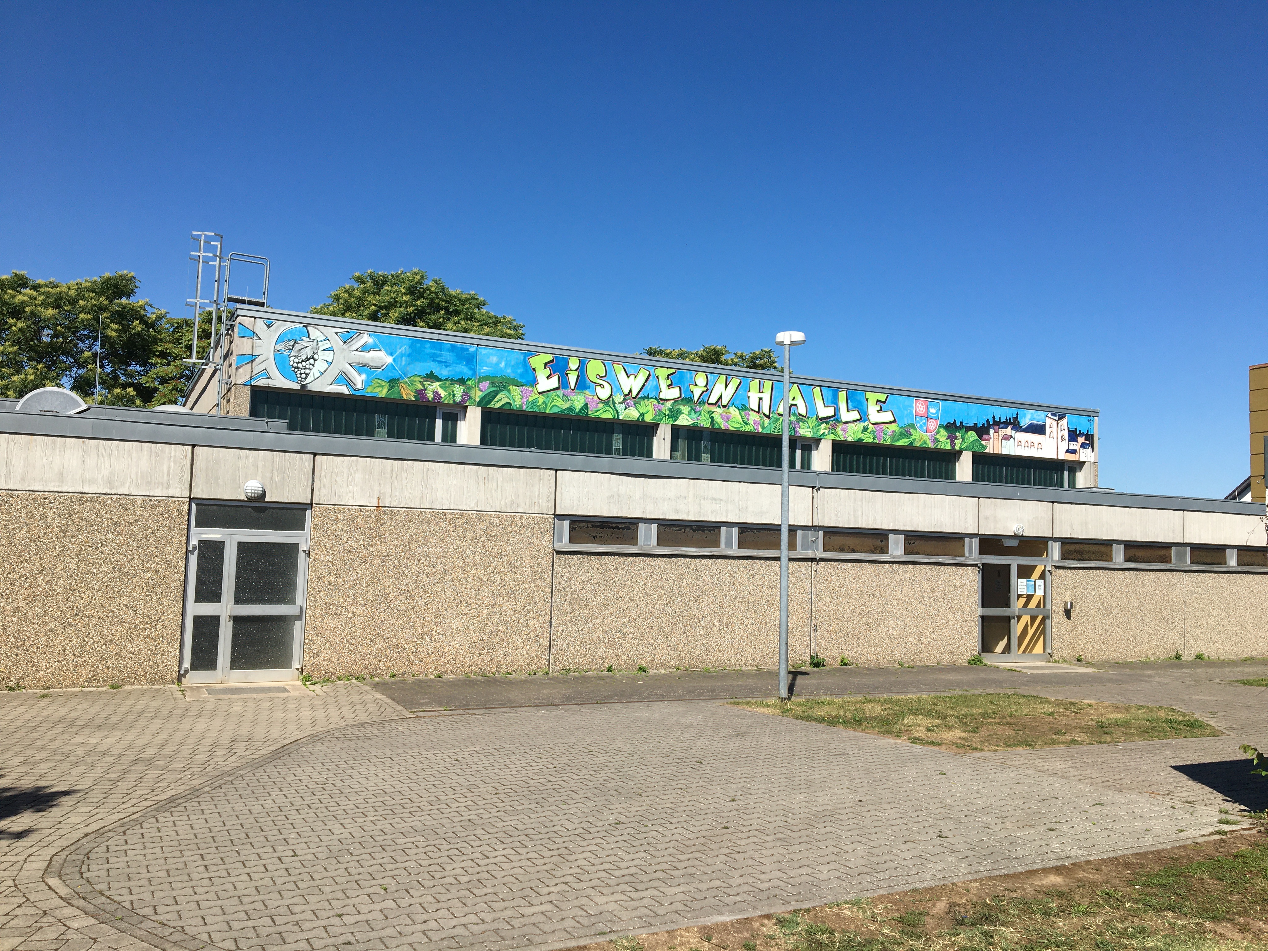 Die hauptsächlich für den Sportbetrieb ausgelegte „Eisweinhalle“ von 1978 bedarf einer energetischen Sanierung sowie einer Modernisierung, um Kosten und Emissionen einzusparen und den bauordnungs- und genehmigungsrechtlichen Anforderungen an Mehrzweckhallen durch eine Nutzungserweiterung gerecht werden zu können. Der Stadtteil Dromersheim hat rund 1.520 Einwohnerinnen und Einwohner und weist ein stetiges Bevölkerungswachstum auf. Die Bestandshalle soll erhalten bleiben, da keine öffentlichen Veranstaltungsräume im Ortskern existieren und dem regen Vereinsleben Räumlichkeiten fehlen.