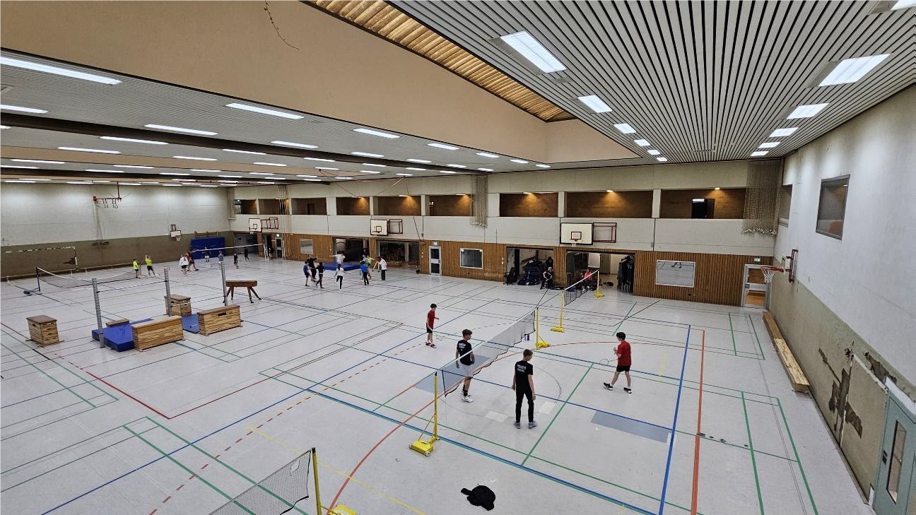 Für die erstmalige Erreichung der Energieeffizienzgebäude-Stufe 70 gemäß Bundesförderung für effiziente Gebäude (BEG) sollen die Erneuerung der Lüftungs- und Heizungsanlage sowie die Installation einer Photovoltaikanlage erfolgen. Zudem werden Haupt- und Nebengebäude mit einer Fassaden- und Deckendämmung versehen und teilweise begrünt. Außerdem wird der Hallenboden gedämmt und erneuert.