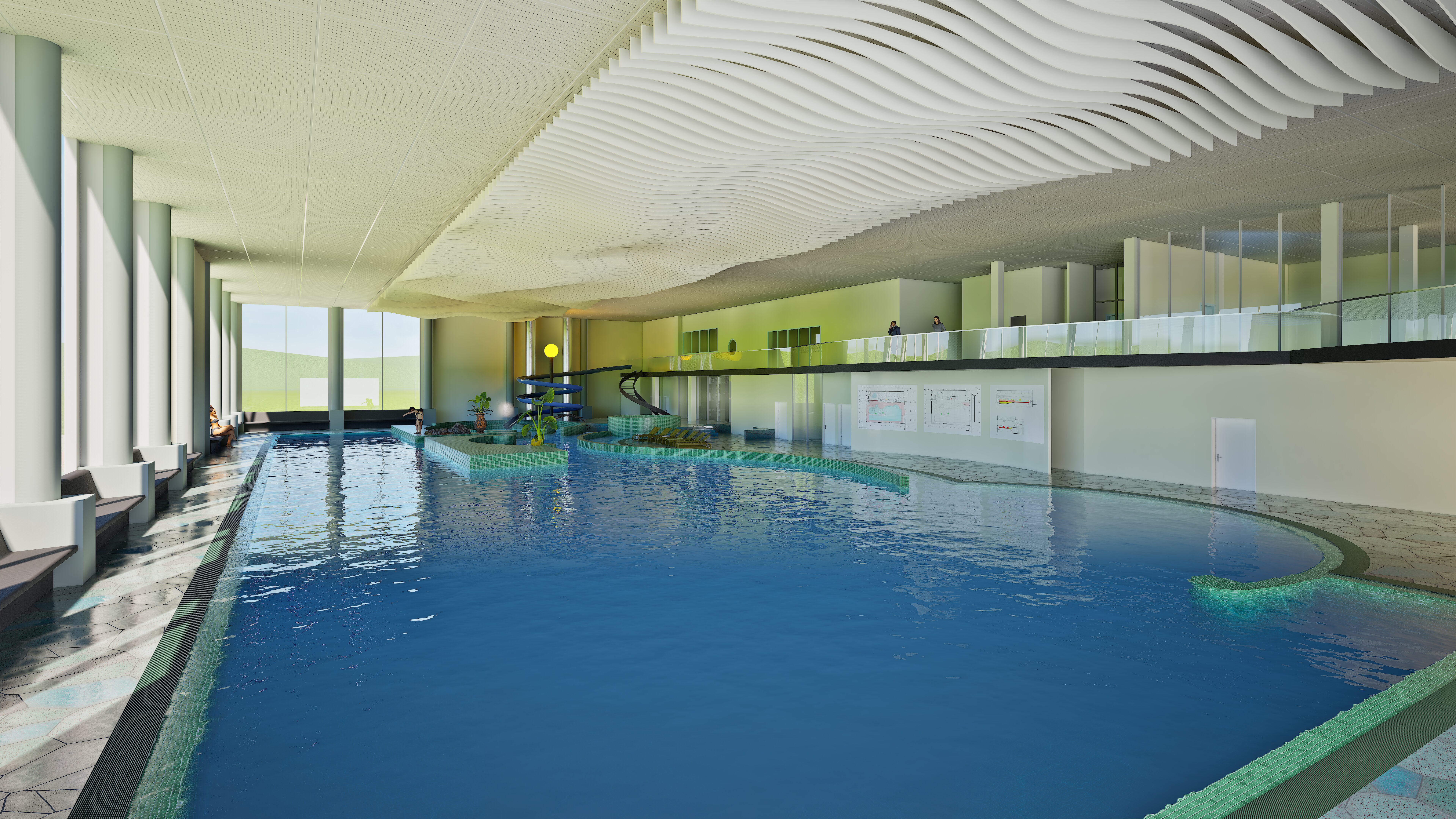 Die geplanten Maßnahmen verfolgen deshalb das Ziel, das Ottilienbad nachhaltig zu sichern und an heutige Standards anzupassen. Kernpunkte sind der vollständige Austausch der Lüftungs-, Beleuchtungs- und Anlagentechnik sowie die Erneuerung der Badewasserverrohrung und großflächigen Fassadenverglasung. Mit der Sanierung wird die Effizienzgebäude-Stufe 70 gemäß BEG erreicht, wodurch Energieverbrauch und Emissionen deutlich sinken. Ebenso wird die Barrierefreiheit konsequent ausgebaut. Der Zugang zum Becken wird beispielsweise durch eine Rampe ermöglicht. Der Bau eines neuen Betonbeckens und die Erneuerung der Unterhangdecke sichern die bauliche Substanz langfristig. Insgesamt verlängert die Maßnahme die Nutzungsdauer des Hallenbades erheblich, steigert seine energetische sowie wirtschaftliche Leistungsfähigkeit und erhält langfristig einen sozial wie städtebaulich zentralen Ankerpunkt für Suhl und die Region.